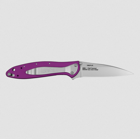 Kershaw Leek Assisted Knife 3" Bead Blast Plain Edge Purple Aluminum Handle