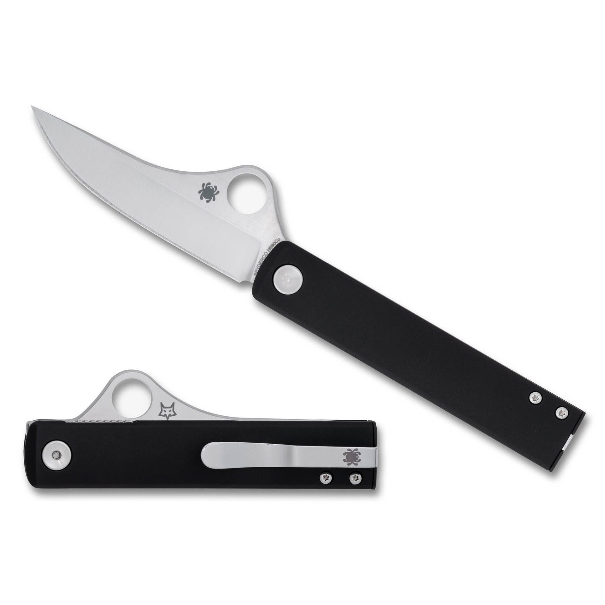 Spyderco, Essenza, Folding Knife, 3.19" Straight Back Blade, 7.23" Overall Length, N690Co Blade Steel, Plain Edge, Satin Finish, Silver, Black Aluminum Handle, Liner Lock C272ALBKP